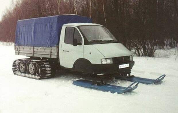 Вчера вечером я совершенно случайно наткнулся на фотографию очень необычной ГАЗели. Было уже поздно, мне хотелось спать, поэтому я сохранил картинку с целью вернуться к ней утром.Проснувшись на следующий день я подумал, что мне показалось. Но нет. Необычная ГАЗель с лыжами вместо передних колес...