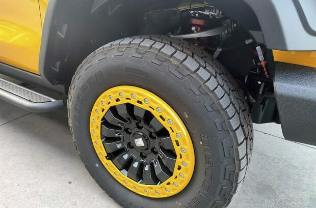 Модель выполнена в ярко-желтом цвете, который сочетается в черными силовыми бамперами и расширенными колесными арками. Образ внедорожника дополняют двухцветные колесные диски. Кроме того, в оснащение машины входит система камер кругового обзора.