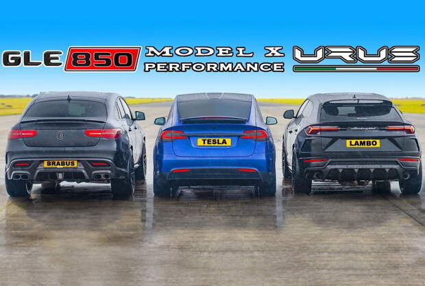 Британский YouTube-канал carwow устроил дрэг-гонку между Brabus 850 (Mercedes-AMG GLE 63 S Coupe) в прошлом кузове C292, Lamborghini Urus и Tesla Model X Performance. Заезды проходили на мокрой трассе: итогового победителя выявили после заезда с места на четверть мили, старта с хода с 30 миль в час (48 километров в час) на полмили, а финальным тестом была оценка эффективности тормозных механизмов со скорости 100 миль в час (161 километр в час).