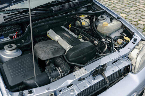 В основе Escort RS Cosworth лежит укороченное шасси Sierra Cosworth, а в движение его приводит двухлитровая турбочетверка Cosworth мощностью 224 лошадиные силы. Коробка передач – пятиступечатая «механика», привод – полный. В описании уточняется, что первые два года с момента выпуска машина использовалась в качестве корпоративной менеджером Karmann, после чего ее приобрел Дитер Хан, возглавлявший разработку этой модели. Он же владел машиной на протяжении последних 24 лет.