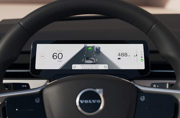 Для водителя предназначен небольшой экранчик сразу за рулём: на него будет выводиться текущая скорость, запас хода и подсказки навигационной системы.Для взаимодействия с реальным миром кроссовер EX90 будет использовать весь набор встроенных датчиков и сенсоров. Неважно, активированы вспомогательные системы или нет, машина будет знать, что происходит вокруг, и помогать водителю.