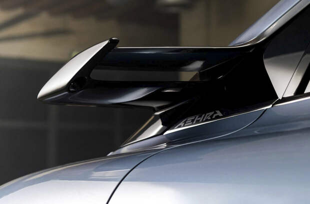 Модели под лаконичным названием Aehra SUV достались круто наклоненное лобовое стекло, плавно переходящее в крышу, и крошечные камеры вместо зеркал, крепления которых вдохновлены трековыми мотоциклами. Ультракороткий капот и небольшой задний свес шеф-дизайнер марки Филиппо Перини характеризует как «смелый подход». Ранее Перини трудился в Lamborghini, где поучаствовал в создании таких моделей, как Aventador, Huracan, а также бестселлера Urus.
