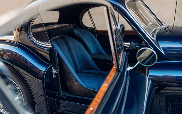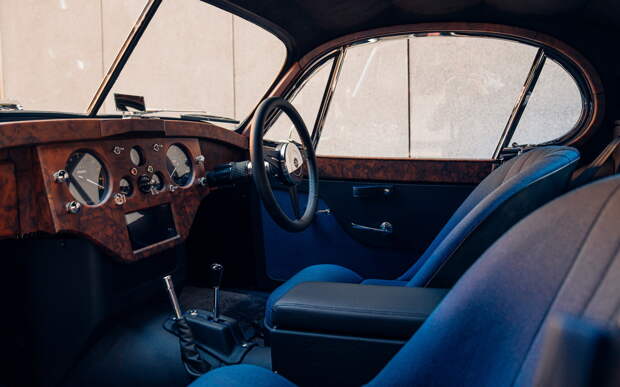 Специалисты Lunaz Design на базе компании в Сильверстоуне тщательно восстановили спорткар 1952 года, полностью отреставрировали все хромированные детали и спицованные колеса, а кузов окрасили в эксклюзивный цвет Obsidian Blue. В тон выполнена и отделка салона, в которой объединены темно-синяя кожа и синяя ткань — аналогичный материал фабрика Arthur Sleep использовала для создания пары туфель для владельца спорткара.