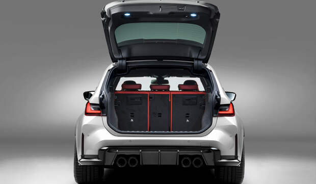 По грузопассажирским возможностям BMW M3 Touring ничем не уступает менее мощным универсалам третьей серии. Объем багажника — от 500 до 1510 литров, базовое оснащение включает трехсекционную спинку заднего дивана (разделена в пропорции 40:20:40) и сервопривод пятой двери, а заднее стекло можно открыть отдельно для погрузки мелких вещей. Кстати, M3 Touring по умолчанию имеет черную крышу, и только за доплату она будет окрашена в цвет кузова.