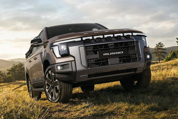Однако на самом деле это не полноценная новинка, а всего лишь модернизированная версия прежнего пикапа Rexton Sports, позднее переименованного в Musso Sports и являющегося собратом внедорожника Rexton."},{"type":"images","attr":{"images":[{"src":"https://autoreview.ru/img/article/images/1791/179107/HKpqXhgh1s.jpg","alt":"","loaded":true},{"src":"https://autoreview.ru/img/article/images/1791/179107/e0GY60CCCG.jpg","alt":"","loaded":true}]}},{"type":"text-block","attr":{},"content":"Как и предшественник, новый грузовичок Musso предлагает два вида длины и расстояния между осями, при этом если «растянутый» Musso Sports имел приставку Khan, то нынешний пикап ее лишился. В обеих модификациях длина выросла на 45 мм — до 5150 и 5460 мм соответственно. Колесная база не изменилась (3100 и 3210 мм), как и размер грузовой платформы (1300 и 1610 мм). Диаметр колес — 17, 18 или 20 дюймов. Автомобиль обрел вертикальные фары с диодными дневными ходовыми огнями сверху и сбоку, развитые бамперы и огромную решетку радиатора, которая может стать еще крупнее с опциональным набором Grand Style.