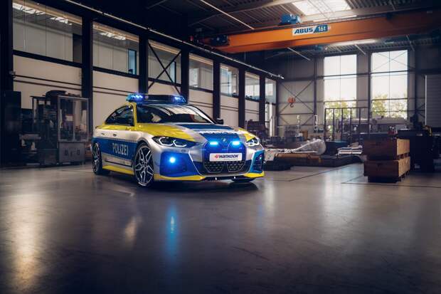 Полицейский электромобиль оснащён установленными на проставках 20-дюймовыми колёсами AC4 Flow Forming с шинами Hankook. В салоне появились алюминиевые накладки на педали и накладка на подставку для левой ноги, а также фирменный селектор системы i-Drive. Дополнительно установлен блок управления спецсигналами Hella, а кузов украшен характерной сине-жёлтой ливреей немецкой полиции от Securlux.