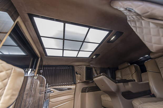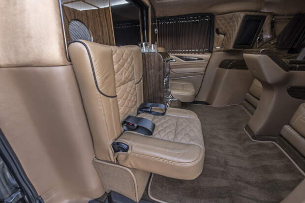 Пассажирский салон защищён отдельной капсулой, которая помимо боковых панелей кузова включает в себя перегородку за первым рядом сидений и дверь в багажнике.Американская компания AddArmor из Вайоминга, специализирующаяся на производстве бронированных автомобилей, представила новый проект — в его основу лёг внедорожник Cadillac Escalade последнего поколения. Помимо защиты кузова от стрелкового оружия и взрывчатки, машина получила роскошный салон с богатым оснащением и шикарной отделкой дорогими материалами. Пассажирский салон защищён отдельной капсулой, которая помимо боковых панелей кузова включает в себя перегородку за первым рядом сидений и дверь в багажнике.
