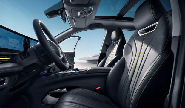 А вот салон полностью новый — вплоть до обшивок дверей и потолочной консоли. Хотя принципиальная архитектура передней панели не изменилась: здесь по-прежнему два экрана по 12,3 дюйма без козырьков. Новая медиасистема с процессором Qualcomm Snapdragon SA8155P работает втрое быстрее прежней. Пульт климат-контроля теперь полностью сенсорный в виде полоски под дефлекторами вентиляции, есть ароматизатор воздуха. Новые передние сиденья — с интегрированными подголовниками и вентиляцией.