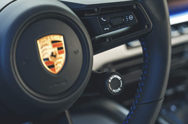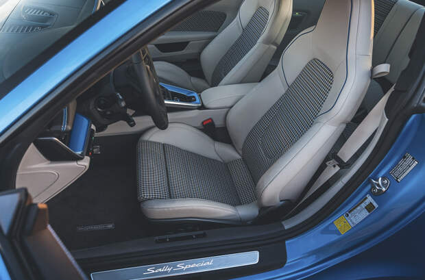 У мультгероини он позаимствовал эксклюзивный цвет кузова Sallybluemetallic, которому вторят некоторые детали в салоне, особые диски в стиле 996, шильдики и «татуировку» под спойлером, как у Салли. Также в числе отсылок — надпись Kachow Mode на подрулевом переключателе режимов и стилизованный логотип GTS Powered в моторном отсеке.