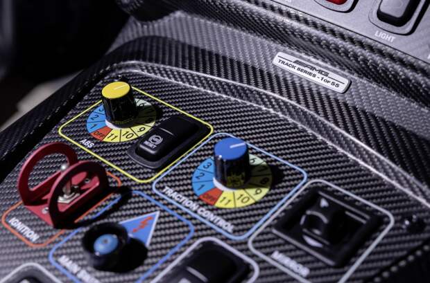 Вместо семиступенчатого «робота» AMG Speedshift DCT 7G на GT Track Series стоит гоночная «секвенталка» Hewland HLS с настраиваемым дифференциалом.