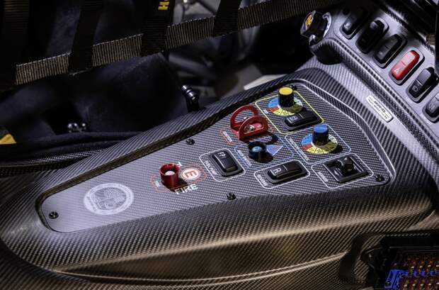 В салоне имеются прикрученный к алюминиевой пространственной раме каркас безопасности, гоночное кресло с пятиточечными ремнями и руль-штурвал, специально разработанный для GT Track Series в сотрудничестве с фирмой Cube Controls. За ним — программируемая «приборка» Bosch DDU 11 с новым дата-логгером.
