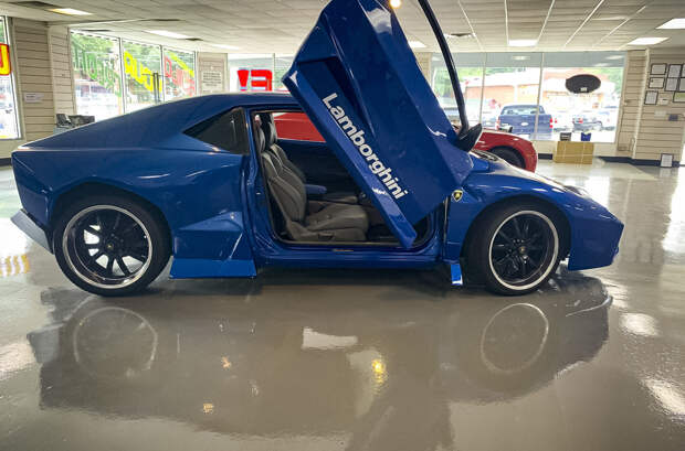 Создатель реплики добавил немного стиля Lamborghini и в интерьер. Так, в салоне появились логотипы итальянской марки на рулевом колесе и сиденьях, а также отделка некоторых деталей замшей.