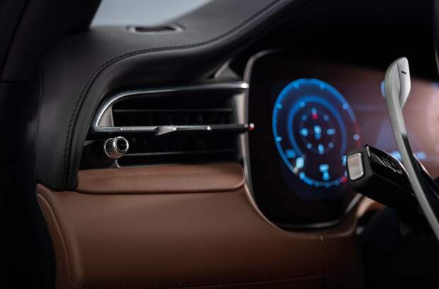 В салоне имеются мультимедиа на ОС Android Automotive с двумя экранами диагональю 10,25 дюйма, аудиосистема Sonus faber с 14 или 21 динамиком, на передней панели установлены смарт-часы.