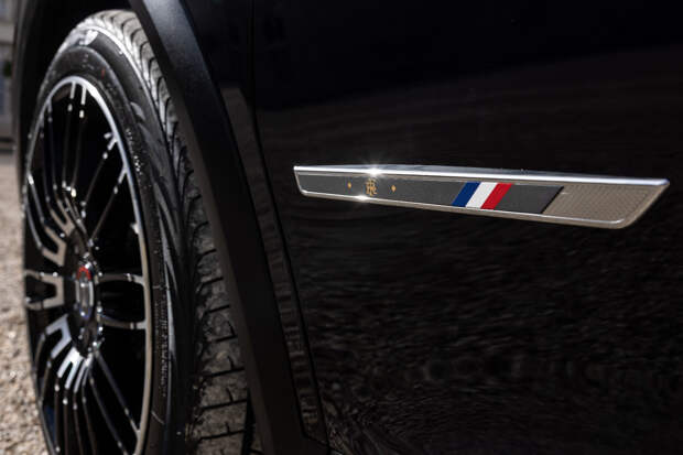 Автомобиль выкрашен в темно-синий цвет Ink Blue, имеет 20-дюймовые диски оригинального дизайна и украшен шильдиками в цветах французского флага. Традиционно в решетку радиатора интегрировали спецсигналы, а по обе стороны от капота установили выдвижные флагштоки.