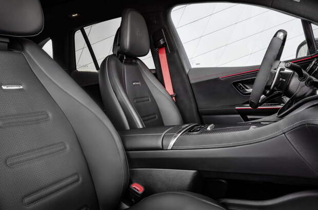 От обычных Mercedes-Benz EQE SUV с пакетом AMG Line «заряженные» кроссоверы отличаются заглушкой а-ля решётка Panamericana, оригинальными многоспицевыми дисками, а также глянцевыми панелями. В салоне появляются профилированные кресла с отделкой из микрофибры или кожи Nappa, рулевое колесо со сдвоенными боковыми спицами и карбоновые вставки.