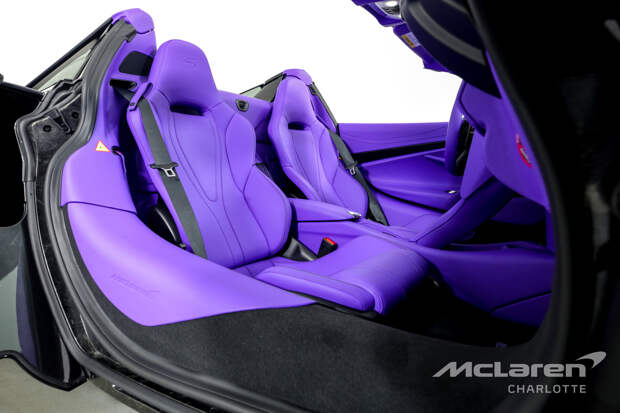 Родстер с 720-сильным 4,0-литровым V8 окрашен в цвет Onyx Black, дополненный 10-спицевыми матовыми чёрными коваными дисками с карбон-керамическими тормозами и фиолетовыми суппортами. Ядовито-фиолетовый оттенок доминирует и в интерьере. За 11 625 долларов специалисты MSO почти каждый квадратный сантиметр интерьера, включая сиденья, трансмиссионный тоннель, приборную панель, дверные карты, стойки и части боковых порогов, затянули в фиолетовую кожу.