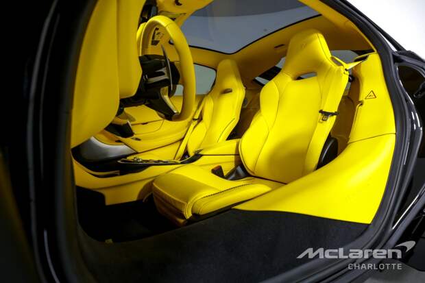 Дополняют её элементы из неокрашенного карбона. За такой эпатажный суперкар с пробегом 1047 километров продавец хочет 400 тысяч долларов. Что касается купе McLaren GT, оснащённого 620-сильным 4,0-литровым V8, то оно окрашено в тот же цвет Onyx Black, имеет чёрные, но глянцевые колёса и тормозные механизмы, суппорта которых окрашены в жёлтый цвет.