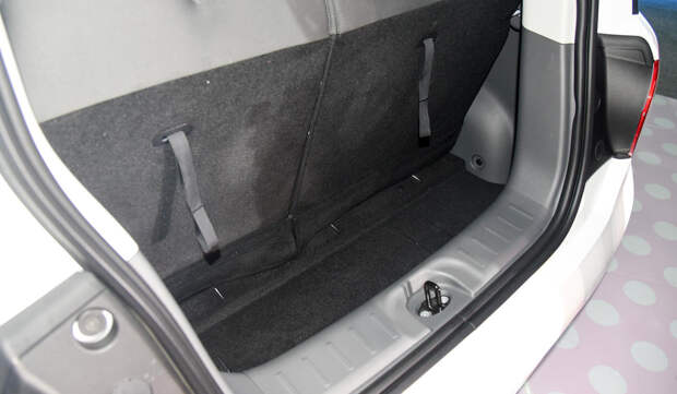 В салоне о мультяшности напоминает разве что расцветка обивки. Здесь все по-взрослому: приборный экран на рулевой колонке, дисплей медиасистемы диагональю 10,25 дюйма, полноценный климат-контроль, две подушки безопасности. На втором ряду могут разместиться двое подростков, а сзади осталось место для багажника, в котором поместится пара пакетов с покупками.
