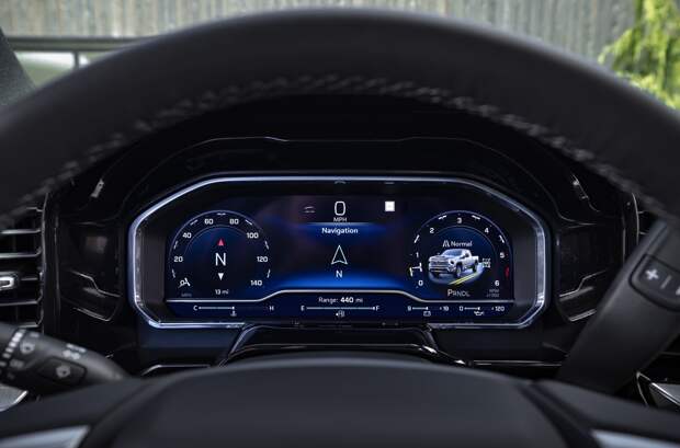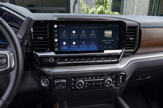 Версиям LT, LTZ и High Country полностью пересмотрели дизайн передней панели. Центральный дисплей имеет диагональ 13,4 дюйма, цифровая «приборка» — 12,3. Весь инструментарий слегка развернут к водителю, что должно напоминать о пикапах серий C/K 1970-х и 1980-х годов.