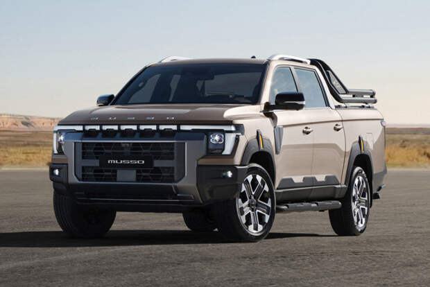 Несколько дней назад производитель сообщил о финальном этапе работы над новым грузовичком с внутризаводским обозначением Q300 и опубликовал изображения закамуфлированных прототипов, а теперь обнародовал официальные снимки и объявил имя новинки: ее тоже назовут Musso."},{"type":"images","attr":{"images":[{"src":"https://autoreview.ru/img/article/images/1790/179068/CDkzPLrN2d.jpg","alt":"","loaded":true},{"src":"https://autoreview.ru/img/article/images/1790/179068/ugzaNoq1y5.jpg","alt":"","loaded":true}]}},{"type":"text-block","attr":{},"content":"Новый пикап KGM Musso выполнен в современном угловатом стиле марки с квадратными фарами и пунктирной светодиодной полосой между ними. Крупная решетка радиатора бесшовно переходит в бампер, причем «намордник» может стать еще массивнее при заказе набора Grand Style (белая машина на фото). Примечательно, что на капоте красуется не фирменная эмблема, а крупная надпись Musso. Остальной кузов также оформлен в квадратной и «прямолинейной» манере, а также щедро сдобрен некрашеным пластиком.