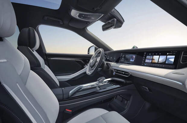 Для кроссовера предложат три варианта окраски кузова и 20-дюймовые колесные диски в разном дизайне. В салоне автомобиля установлена подъемная передняя панель, которая при запуске двигателей открывает три экрана диагональю 12,3 дюйма.