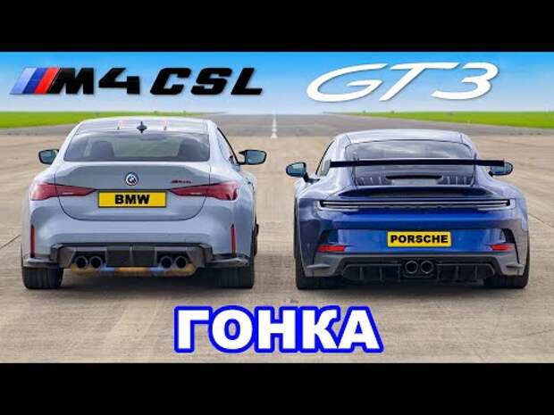 #carwow #bmw #porsche Понравилось видео? Подписывайтесь на @carwow Русская версия и включайте уведомления, чтобы не пропускать новые выпуски! Пришло время эпичного драг-заезда заднеприводных авто! Мэт заполучил новенький BMW M4 CSL, и он потягается с Янни за рулём Porsche 911 GT3! Давайте сравним характеристики этих заднеприводных монстров. Начнём с BMW: он оснащён 3-литровой "рядной шестёркой" twin-turbo мощностью 550 л.с. и 650 Нм момента. Авто на 100 кг легче стандартной модели M4, его снаряжённая масса 1625 кг. Впрочем, машина недешёвая, сегодня она обойдётся минимум в 125900 фунтов! Теперь о Porsche: он оснащён 4-литровой оппозитной шестёркой, мощностью 510 л.с. и 470 Нм момента. Это авто заметно легче BMW, его снаряжённая масса 1435 кг, но и стоит несколько дороже, 135700 фунтов. Что ж, у Porsche меньше мощности - неужели заезд станет лёгкой победой BMW? Или меньшая масса Porsche в сочетании с отменным лонч-контролем, обеспечат ему первое место? Есть лишь один способ выяснить - ПОГНАЛИ! Carwow Shorts - https://www.youtube.com/channel/UChqjw1OxDLUVvoP3r7BXteg TikTok - https://vm.tiktok.com/Vr2AS9/ Instagram - http://www.instagram.com/carwow Instagram Мэта - http://www.instagram.com/matwatsoncars Facebook - http://www.facebook.com/carwowuk/ Twitter - http://www.twitter.com/carwowuk e-mail - reviewmycar@carwow.co.uk Канал Мэта - https://www.youtube.com/channel/UCulu1KUYJ_2OBDouc_d-cUA Оригинальное видео от 01.10.2022 Ссылка: Мерч: https://teespring.com/en-GB/stores/carwow-index