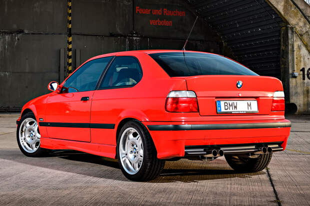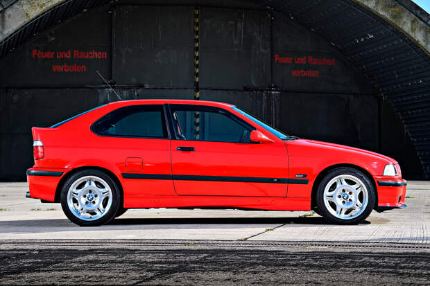 Если предыдущая работа была своеобразным подарком компании самой себе, то M3 E36 Compact создавался в качестве сюрприза к 50-летнему юбилею… журнала Auto Motor und Sport. Единственный экземпляр был собран вручную в мастерских BMW M. Хетчбэк получил идентичную настоящим М3 техническую начинку и соответствующие визуальные атрибуты. Кованные диски (Styling 24M) были от кабриолета, а на месте противотуманок появились воздухозаборники для охлаждения передних тормозов.