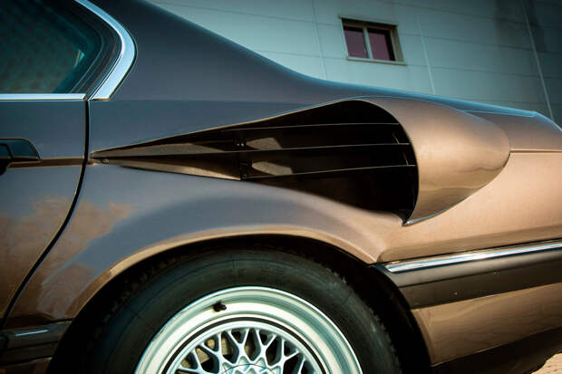 Единственным автомобилем, способным вместить 310 килограммового великана, был длиннобазный седан 7-серии (Е32), но даже в его подкапотном пространстве оказалось слишком тесно. Поэтому всю систему охлаждения пришлось перенести в багажник, между задних фонарей установить решетку, за которой скрывалась пара мощных вентиляторов, а в задних крыльях прорезать огромные воздухозаборники. Конечно, никто в штабе BMW M не питал иллюзий относительно возможного запуска машины в серию — эти парни хотели лишь в очередной раз продемонстрировать свои выдающиеся способности. /m
