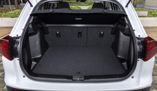 Пиковая мощность гибридной системы — 115 л.с. Тяговая батарея емкостью всего 0,84 кВт∙ч установлена под полом багажника, поэтому его объем уменьшен с 375 литров у базовой Витары до 289 литров. Такой кроссовер может передвигаться в чисто электрическом режиме, но недолго и небыстро, поэтому дальность хода на электротяге не указана. Зато такая Vitara, в отличие от гибридных конкурентов, предложена как с передним, так и с полным приводом: это стандартная для модели система AllGrip с муфтой на задней оси.