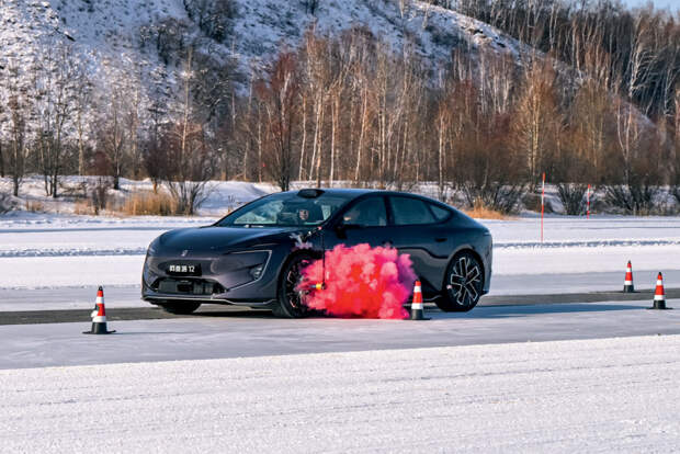 "},{"type":"images","attr":{"images":[{"src":"https://autoreview.ru/img/article/images/1792/179208/jmGmndYMrK.jpg","alt":"Мороз и сухой, рассыпчатый снег — идеальные условия для скольжений","loaded":true},{"src":"https://autoreview.ru/img/article/images/1792/179208/rP3VlsX9x8.jpg","alt":"Мороз и сухой, рассыпчатый снег — идеальные условия для скольжений","loaded":true}]}},{"type":"text-block","attr":{},"content":"Интересно, но со стороны не впечатлило. А вот переставка на ледяном миксте с лопнувшим передним колесом, которую исполнил Avatr 12, получилась очень эффектной! Инженер, сидящий рядом с водителем, бьет ладонью по красной кнопке, колесо мгновенно разгерметизируется, и красный дым из пиропатрона оповещает экипаж об аварийной ситуации, а дальше... Дальше — ничего! Автомобиль прыгает в соседнюю полосу, сохраняет стабильность траектории и спокойно тормозит. Причем таких упражнений у чангановцев целый набор. Сначала машина едет прямолинейно по миксту (лед/асфальт), «разрывая» левую шину. Потом правую. После этого испытание повторяют на кругу радиусом 80 м с боковым скольжением и снежно-ледяным микстом, и тоже поочередно с разными колесами. Далее следует простая переставка и переставка с возвратом в свою полосу — каждый раз на миксте и с разными колесами. Как объясняют китайские инженеры, датчики давления в шинах работают с очень высокой частотой опроса и обеспечивают чувствительность в 600 раз выше, чем у традиционных систем мониторинга. Так что всего за 50 миллисекунд комплекс SDA Intelligence умудряется скоординировать работу сразу нескольких систем для стабилизации автомобиля. Управление вектором тяги электромоторов помогает сохранить стабильность, а тормозной ассистент распределяет усилие по колесам с учетом реальных условий качения каждого из них.