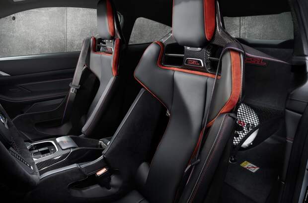 Кресла-ковши M Carbon сбросили 24 килограмма. Демонтаж заднего дивана и ремней безопасности — 21. Столько же дала замена компонентов подвески и установка легкосплавных колёс. Крыша, капот и крышка багажник M4 CSL сделаны из CFRP-пластика — эти детали в сумме на 11 килограммов легче стандартных. Титановый глушитель — ещё минус четыре килограмма.