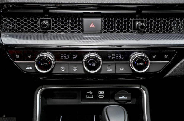Интерьер топового кроссовера Honda CR-V обшит черно-красной натуральной кожей. В оснащение входят передние кресла с обогревом и вентиляцией, адаптивный круиз-контроль, двухсекционная панорамная крыша, светодиодная оптика и аудиосистема Bose. Кроме того, автомобиль оснащен обогревом руля, электроприводом передних сидений и функцией выбора режимов движения.