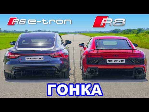 #carwow #audi Понравилось видео? Подписывайтесь на @carwow Русская версия и включайте уведомления, чтобы не пропускать новые выпуски! Пришла пора узнать, какой Audi быстрее проедет 1/4 мили - Audi R8 V10 Performance или RS e-tron GT? В теории, RS e-tron GT должен с лёгкостью одержать победу. Два электромотора обеспечивают полный привод, совокупную мощность 646 л. с. и 830 Нм момента. С такими характеристиками выходит, что это самый мощный Audi на сегодняшний день! Для сравнения, у R8 5,2-литровый атмосферный V10, мощность 620 л.с. и 580 Нм момента. То есть, машинка не слабая, но мощности у неё всё же поменьше, чем у e-tron GT! Впрочем, есть у них одно существенное различие - снаряжённая масса. У R8 она 1595 кг, а RS e-tron GT куда тяжелее, целых 2345 кг! Повлияет ли эта разница в массе на результат? Или же мгновенный отклик электромотора поможет e-tron одержать победу? Есть лишь один способ выяснить - ПОГНАЛИ! Ещё один крутой заезд с Audi: Carwow Shorts - https://www.youtube.com/channel/UChqjw1OxDLUVvoP3r7BXteg TikTok - https://vm.tiktok.com/Vr2AS9/ Instagram - http://www.instagram.com/carwow Instagram Мэта - http://www.instagram.com/matwatsoncars Facebook - http://www.facebook.com/carwowuk/ Twitter - http://www.twitter.com/carwowuk e-mail - reviewmycar@carwow.co.uk Канал Мэта - https://www.youtube.com/channel/UCulu1KUYJ_2OBDouc_d-cUA Оригинальное видео от 21.09.2022 Ссылка: Мерч: https://teespring.com/en-GB/stores/carwow-index