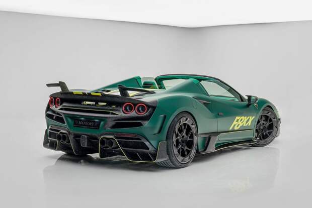 Новинка, как и купе F8XX, в демонстрационном варианте окрашена в необычный для марки зелёный цвет.Ателье Mansory, известное своими необычными проектами и радикальными аэродинамическими обвесами, официально показало F8XX — так после доработки в компании стал называться родстер Ferrari F8 Spider. Модель появилась спустя год после премьеры F8XX на базе купе Ferrari F8 Tributo. При этом отличий у двух модификаций, со стационарным и складным верхом, не так много, но они все же имеются. Новинка, как и купе F8XX, в демонстрационном варианте окрашена в необычный для марки зелёный цвет.