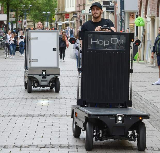 Но всех переплюнуть, похоже, решили в немецкой компании Carit Automotive — и приспособили для финальной доставки моторизированную электротележку под названием Hop.Машинка представляет собой конструкцию с плоской платформой и органами управления в задней части. Предполагается, что водитель будет ездить там стоя и смотреть вперед поверх груза. Грузоподъемность тележки достигает 250 кг, а вместить она может в зависимости от версии одну или две европалеты.