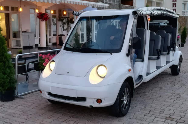 Никаких технический подробностей пока нет – единственное, что известно, это то, что силовой каркас сварен из стальных труб, а наружные панели отформованы из композитов. По одной из версий, за внешним декором скрывается гольф-кар российской компании «Эльтавр», у которой есть похожий пассажирский электробус «Дилижанс», рассчитанный на восемь либо 11 человек.