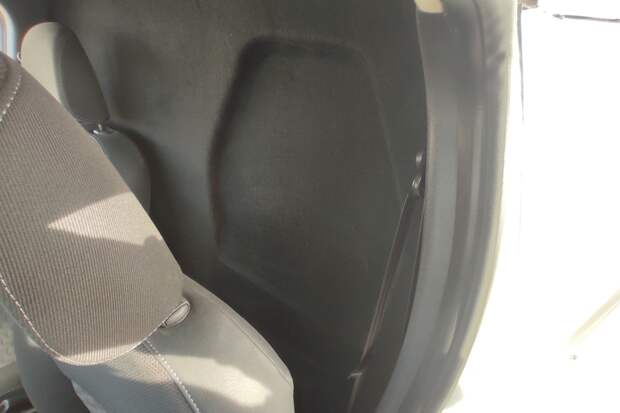 А вот пассажиру приходится тесниться: для него выемки в перегородке не предусмотрено.