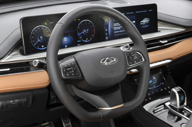 Запуск двигателя сопровождается затяжным анимационным перфомансом: всякий раз приборка демонстрирует мультик под неотключаемую мелодию. За это время можно успеть пристегнуться и перевести немного медлительный в плане смены режимов робот в положение «драйв». Кстати, раздражающих звуков много — например, система распознавания знаков также будет пиликать, если её не деактивировать. В городе у Chery нет никаких проблем с управлением: обычный крупный кроссовер с «нетяжёлым» рулём, шустрым двигателем, нормально настроенной чувствительностью педалей и хорошей обзорностью.
