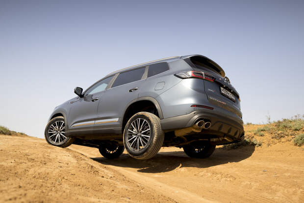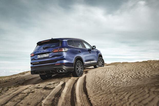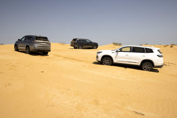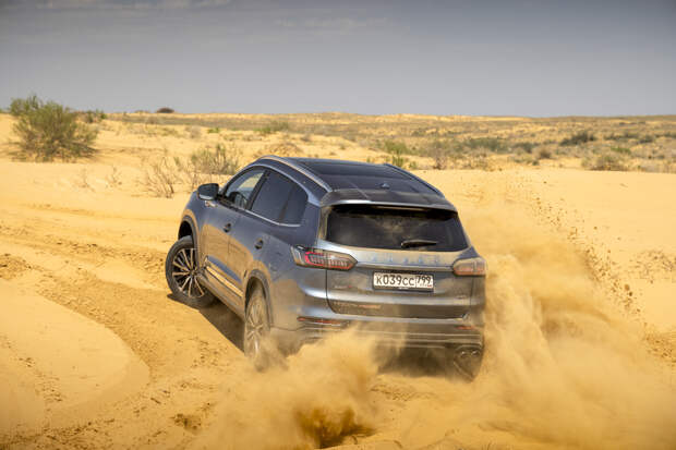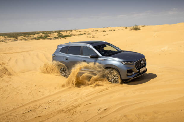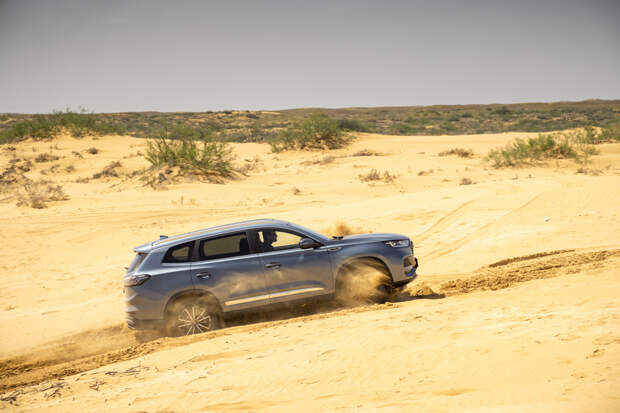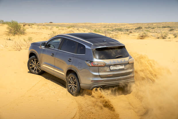 Единственное, что досаждает при активном движении по неровной дороге — отчаянный скрип из района центральной стойки, как будто кузов не очень жёсткий. Во всём остальном Chery предоставляет достойный уровень акустического комфорта в любых условиях. Финальным испытанием для Pro Max становятся песчаные барханы. В любом из трёх дорожных режимов Chery довольно быстро вязнет в песке и отказывается крутить колёса, распознав пробуксовку.