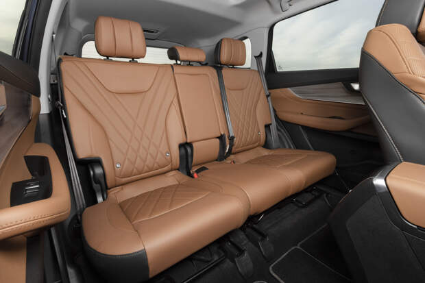 Но глобально, если не обращать внимания на детали, внутреннее пространство продумано хорошо. Посадка водителя удобная (отдельное спасибо за достаточный вылет рулевой колонки), порты питания и кармашки в изобилии, в крыше панорамный люк рекордных размеров, простора достаточно на всех трёх рядах. Места в багажнике адресованы всё же скорее детям, но мало какой из всех семиместных кроссоверов предлагает удобную и для взрослых посадку. К типичному для семейных автомобилей панорамному салонному зеркалу надо привыкать, но я нашёл в таком решении больше преимуществ, чем неудобств.