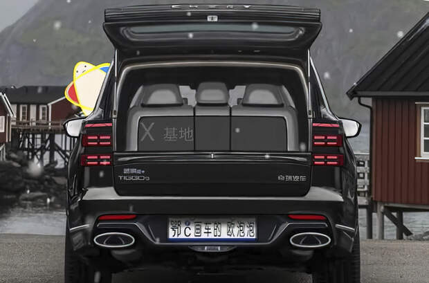 На рендерах автомобиль изображен с модной по нынешним меркам безрамочной радиаторной решеткой как у Omoda 5, двухуровневой передней оптикой, горизонтальными полосами поворотников и надписью Chery на кромке капота – она выполнена нестандартным для марки шрифтом. Сзади у Tiggo 9, по мнению автора рендеров, будет единый фонарь во всю ширину кузова, стоп-сигналы и указатели поворота, расположенные в два уровня, и багажная дверь в стиле Range Rover.