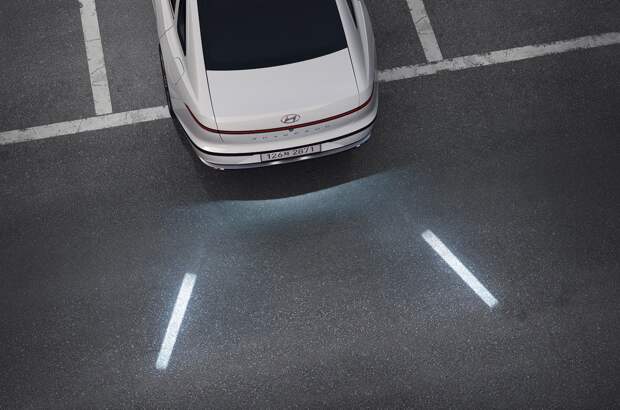 Есть у Grandeur и экзотические опции. Например, специальные лампы в заднем бампере, проецирующие направляющие линии при движении задним ходом, или система распознавания водителя по отпечатку пальца.