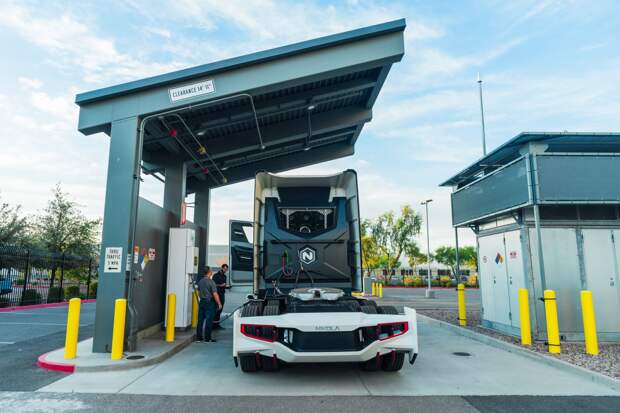 Впрочем, заявлено, что постепенно станция перейдет и на общественную эксплуатацию. Главная особенность новой грузовой заправки — высокая производительность. Так, за 20 минут она способна закачать в баки тягача 80 кг сжатого под давлением почти 700 атмосфер водорода. Заявлено, что для того же Nikola Tre этого должно хватить почти на 800 км пробега.
