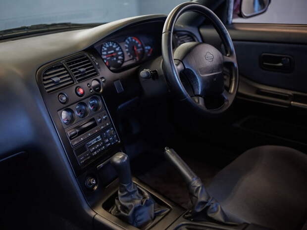 Этот конкретный экземпляр купе выпущен в 1995 году. Окрашенный в тёмно-фиолетовый цвет Midnight Purple спорткар с двухтонным серым салоном оснащен культовым 2,6-литровым битурбомотором RB26DETT.