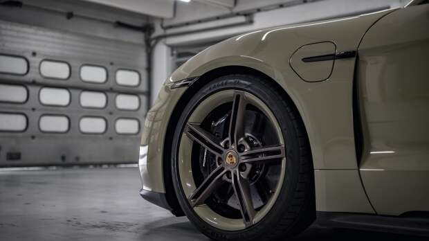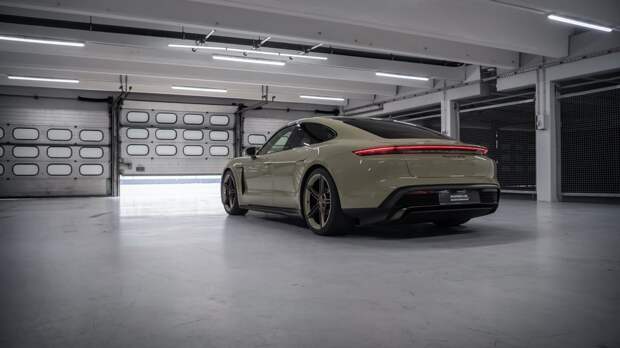 Впервые в истории Porsche Taycan электромобиль получил обивку салона чёрной кожей с прострочкой нитью цвета Island Green, декоративные панели сделаны из дерева Paldao с открытыми порами, а часть элементов окрашены в цвет Bronzite.