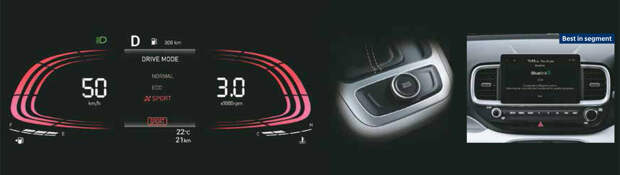 Моторная гамма прежняя. Атмосферник 1.2 MPi (83 л.с.) и турбодизель 1.5 CRDi (100 л.с.) сочетаются только с «механикой», а бензиновый турбомотор 1.0 T-GDi (120 л.с.) — с механической коробкой передач iMT (без педали сцепления) или преселективным «роботом». Комбинация дизеля и «автомата» так и не появилась, хотя она давно есть у родственной модели Kia Sonet. Привод только передний, зато теперь есть система выбора ездовых режимов: пресеты Normal, Eco и Sport переключаются рукояткой на центральном тоннеле.