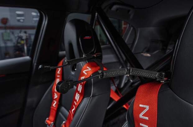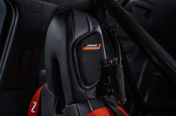В салоне можно увидеть полукаркас безопасности. Гоночные сиденья оснащены четырехточечными ремнями. Машину оборудовали системой пожаротушения, интеркомом для связи водителя и штурмана, а также обшили руль и рычаг гидравлического «ручника» алькантарой.