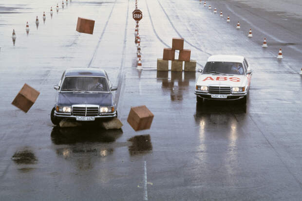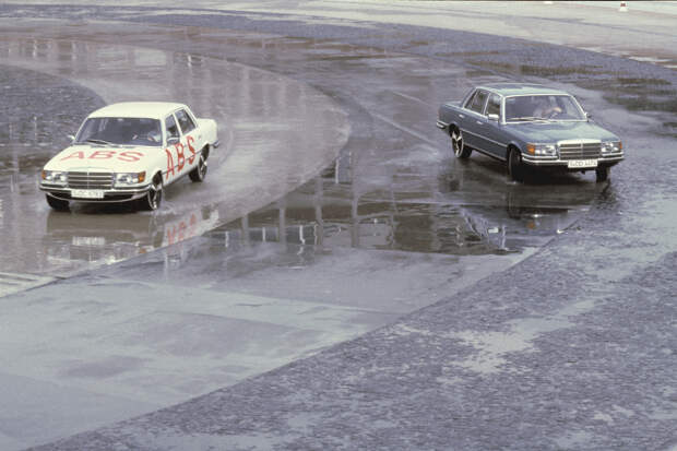 А уже потом, на закате серийного производства, S-Класс получил ещё одну важную технологию безопасности. На этот раз — активной безопасности: мы имеем в виду антиблокировочную систему тормозов Bosch, которая появилась в списке опций модели W116 в 1978 году, впервые на легковом автомобиле. Вопреки распространённому заблуждению, такая система не сокращает тормозной путь, но позволяет сохранить реакции на руль при экстренном торможении.