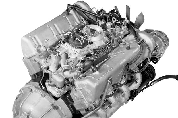 Причём на шестицилиндровом двигателе использовалась головка с двумя распредвалами и камерой сгорания полусферического типа — хоть и с двумя клапанами на цилиндр, но удачной «мощностной» конструкции с впуском и выпуском на разных сторонах. В зависимости от исполнения, отдача «шестёрки» составляла от 120 до 185 лошадиных сил.