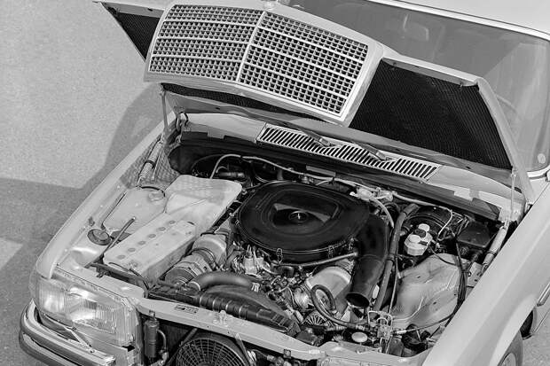 По сохранившейся и по сей день традиции, часть двигателей запускали в серию с большим опережением относительно выхода новой модели — обычно это позволяет равномернее распределить нагрузку на моторное производство, и загодя отработать конструкцию. Так что двигатель V8 3.5 серии M116 ещё в 1969 году начали ставить на седаны предшествующего семейства W108/W109, а двумя годами позже добавили и версию объёмом 4,5 литра под индексом M117. Рядная «шестёрка» M110 объёмом 2,8 литра прописалась под капотом среднеразмерного седана W115 — с весны 1972 года.